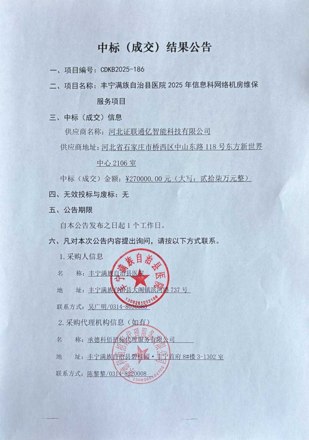 丰宁满族自治县医院2025年信息科网络机房维保服务项目